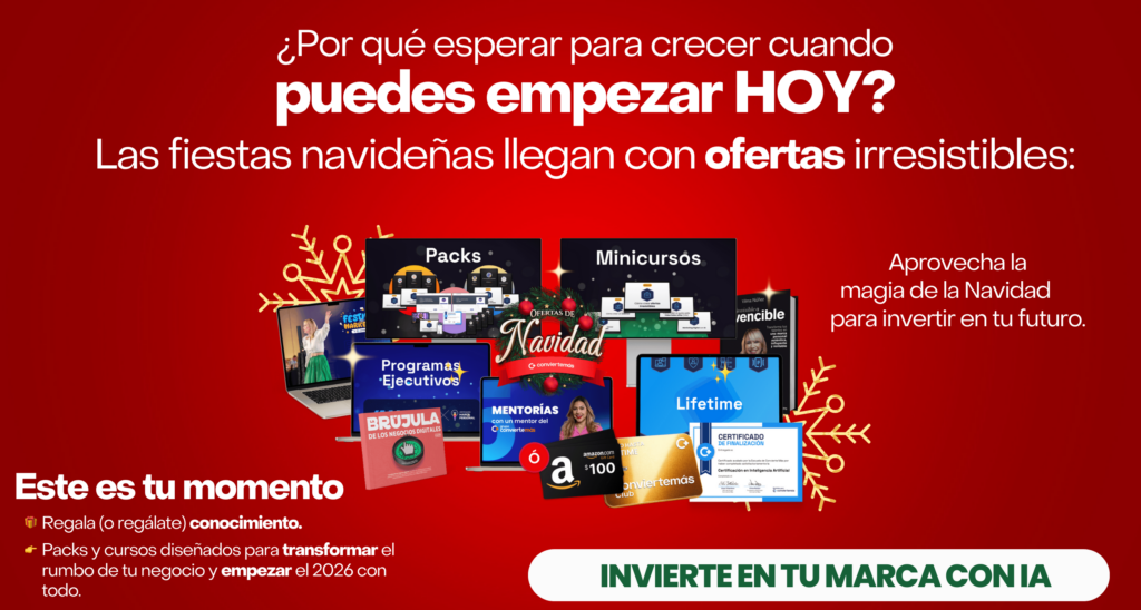Descubre todas las ofertas de Navidad 2025 haciendo clic en este enlace o en el banner que te compartimos acá abajo y empieza el 2026 con las herramientas y el conocimiento que tanto necesitas para construir tu marca personal exitosa con IA: