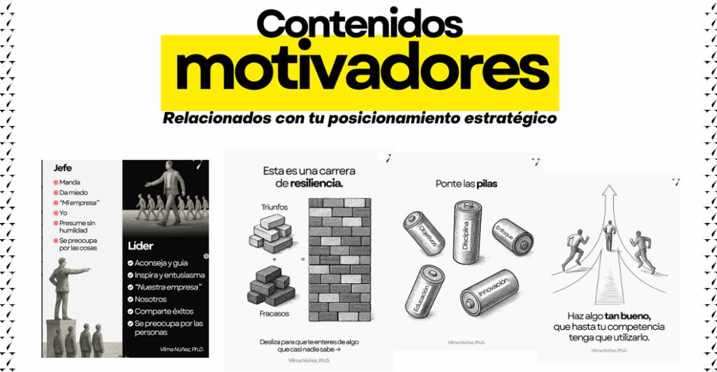 Si el posicionamiento es liderazgo empresarial, el contenido motivacional debe centrarse en evolución profesional, superación de obstáculos empresariales y construcción de legado. La autoridad viene de la coherencia.