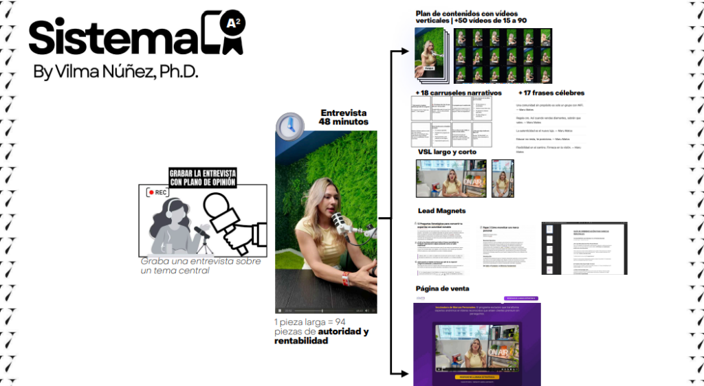 Aquí es donde el Sistema A² se vuelve exponencialmente poderoso. A partir del contenido base, se crean activos para dos objetivos distintos: