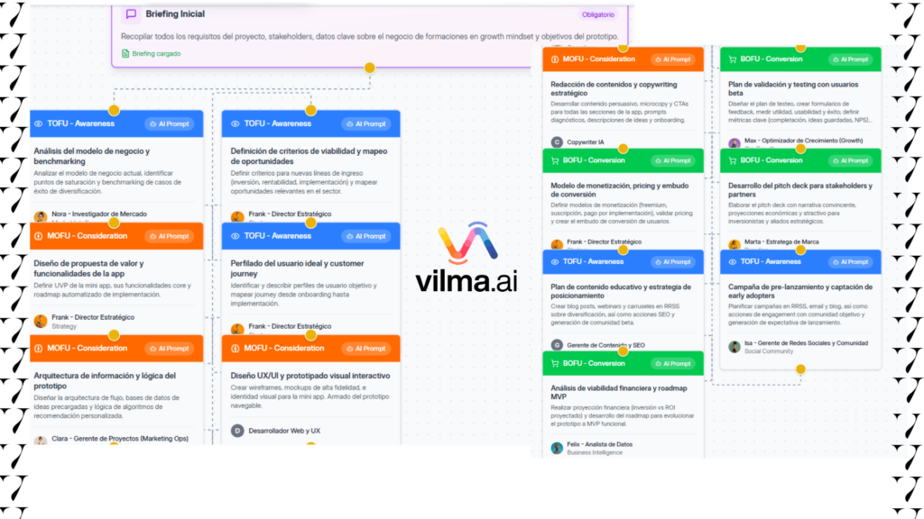 En contraste, un sistema especializado en marketing con metodologías integradas, como Vilma.ai,conoce estos parámetros desde el inicio.