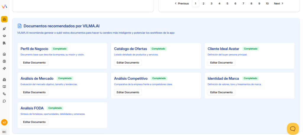 Crea con Vilma.ai los documentos más importantes de tu negocio: perfil de tu negocio, tu oferta, tu cliente ideal y tus análisis clave.