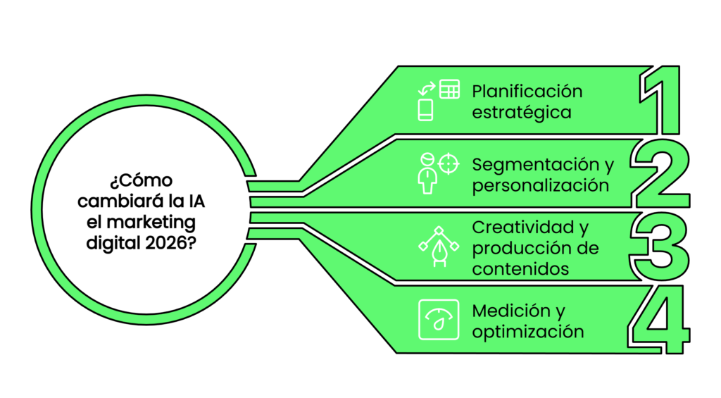 En la industria del marketing, para 2026 la IA impactará especialmente en cuatro áreas:
